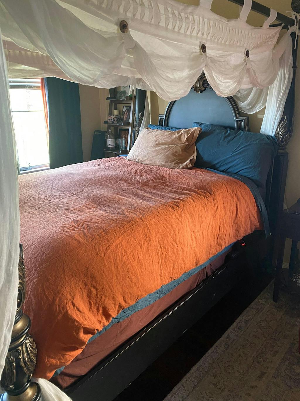 The burnt orange looks just like the picture, great quality and super soft!