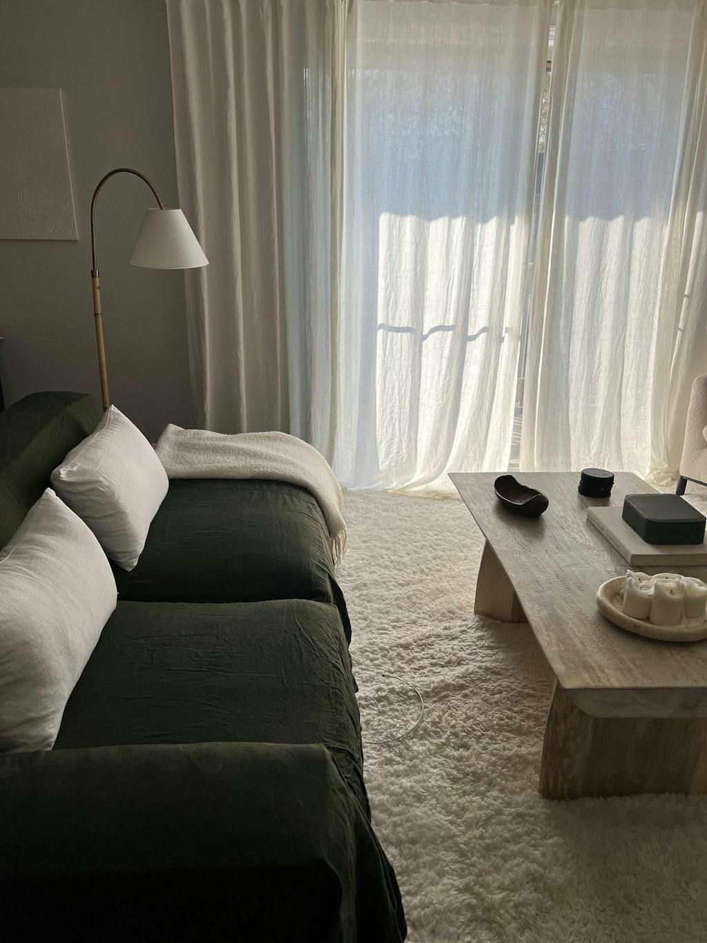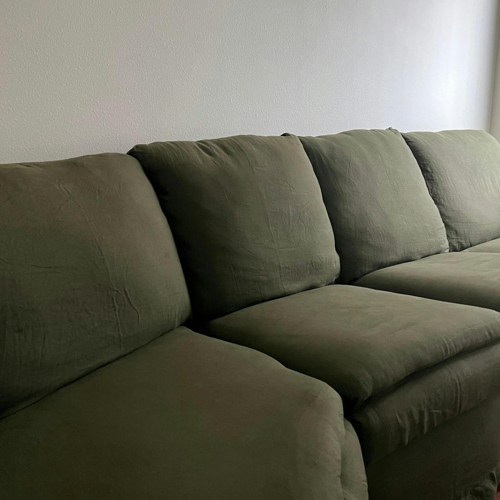 Sofabezug aus Leinen , der einen hellen Akzent oder eine sanfte Pastellergänzung in Ihrem Interieur darstellt.