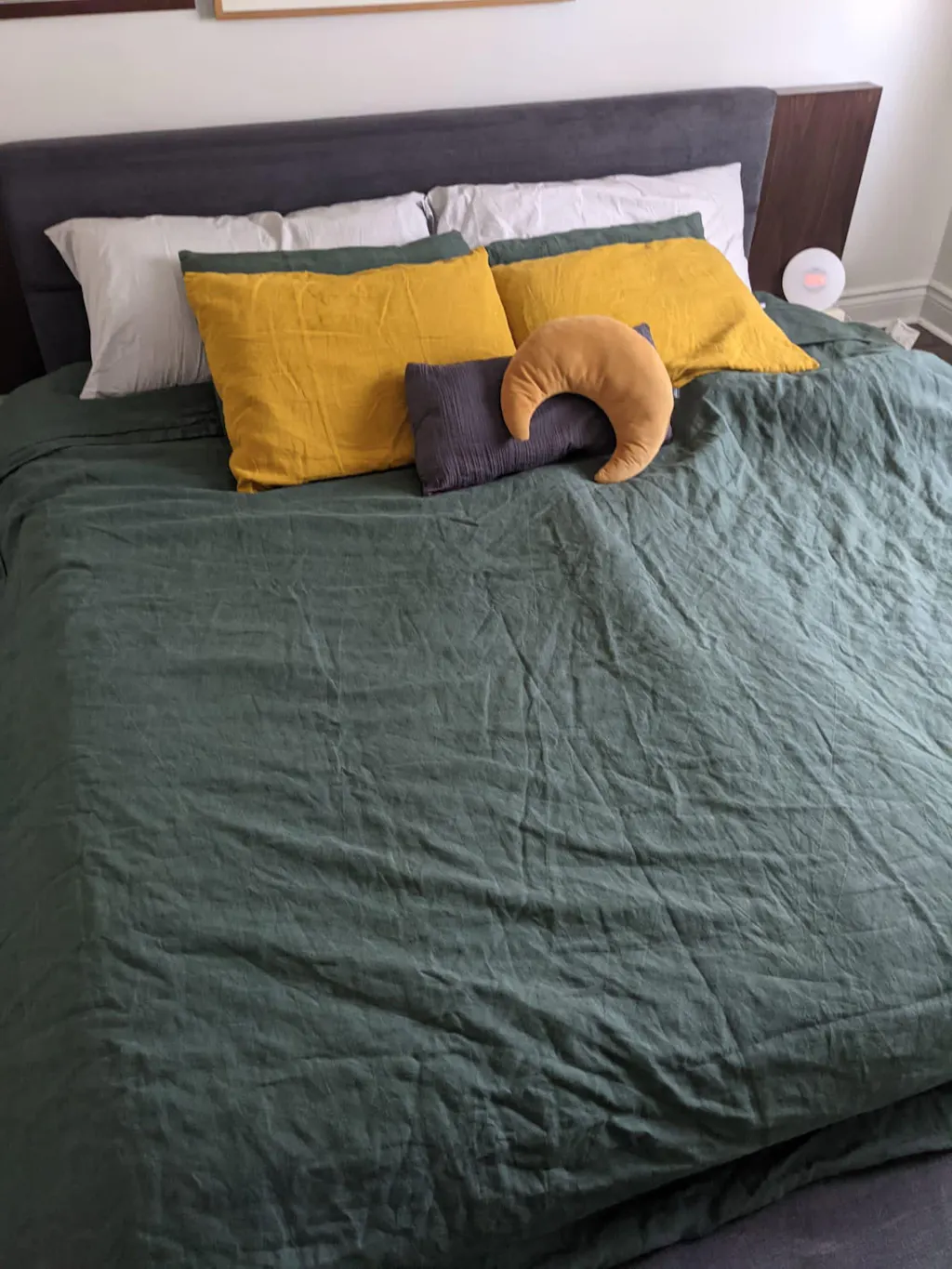 I was struggling to find a bed cover in a lighter fabric for the summer AND in a certain tone of green. I had tried and returned so many until I turned to Etsy.