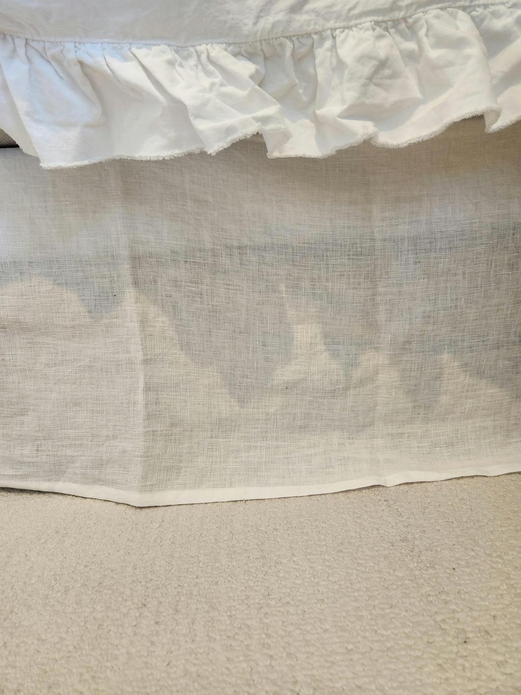 Maßgeschneiderter Bettrock aus weißem Leinen