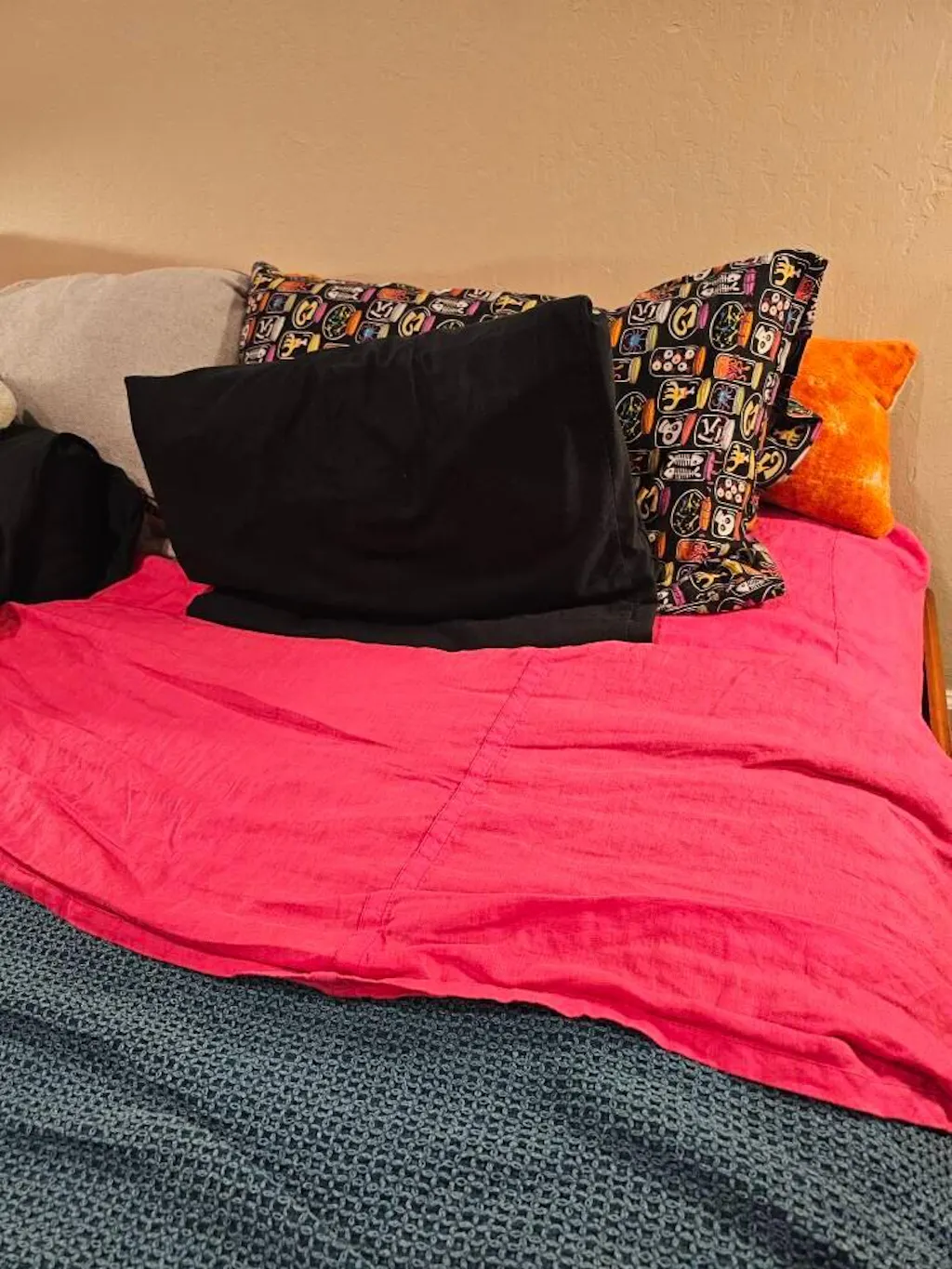 I ordered a king size fuchsia duvet cover with two queen size pillow cases for my queen size bed.